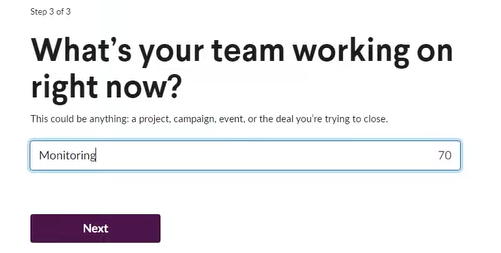 Start the app and login with your account. Once you are logged in, give your workspace a name. The step 'add teammates' can be skipped if you don't plan on inviting more people. In the next step you will be asked to name a project you're currently working on. I named it 'Monitoring', since that is a fitting name for what we are going to do.
