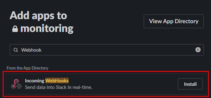 Once this is done, we want to integrate the Webhook into our channel. For that, go to Integrations, add an app and search for 'Webhook' and add the following app: